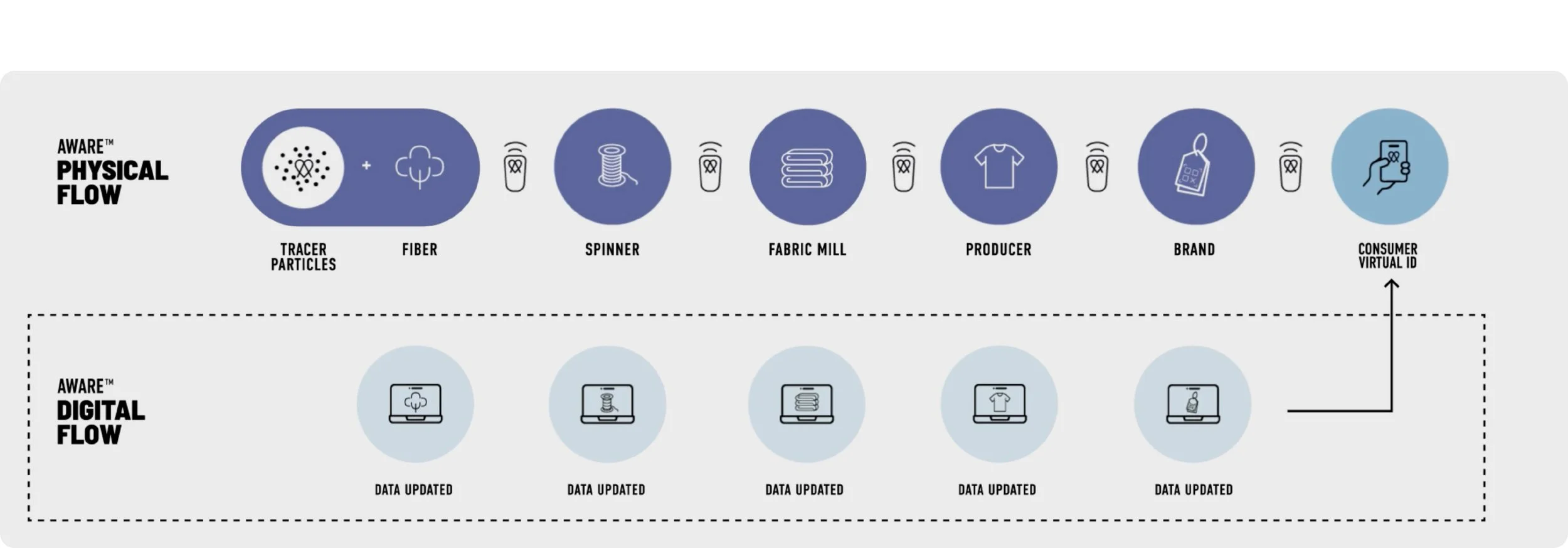 Baichuan has partnered with Aware™, the leading traceability solution. Using batch-level digital twins stored on blockchain, Aware™ enables verification of the recycled material’s journey from waste to finished fabric.